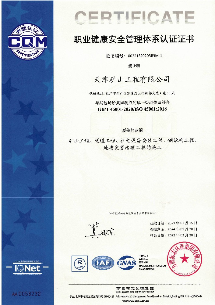 職業(yè)健康安全管理體系認(rèn)證證書